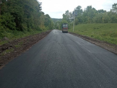 Підрядник виконав роботу із укладання двох шарів асфальтобетону в Жабках. Заплановано провести зміцнення узбіччя. За сприятливих погодних умов ремонт продовжиться найближчим часом в Яхниках.
